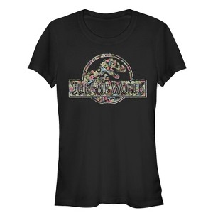 Juniors Womens Jurassic World Tropical Flower Logo T-Shirt - 1 of 3