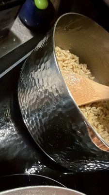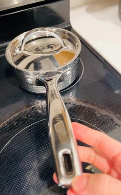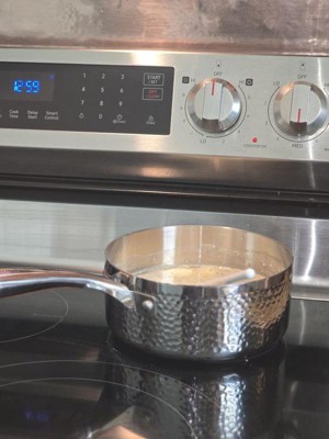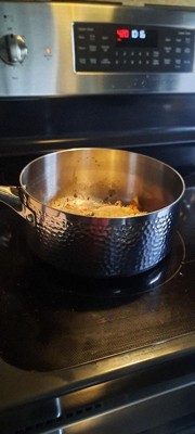 [This review was collected as part of a promotion.] I love this saucepan! The insulated handle stays cool and comfortable to hold while cooking. The hammered stainless steel exterior looks stunning and adds a vintage touch to my kitchen. It heats evenly thanks to the tri-ply construction, making it perfect for sauces and simmering. Easy to clean and very reliable for everyday use.