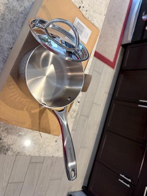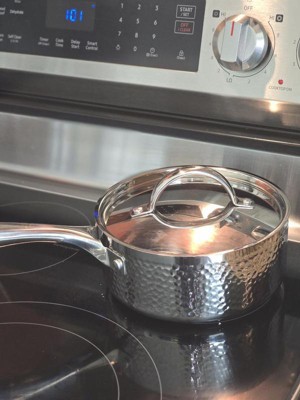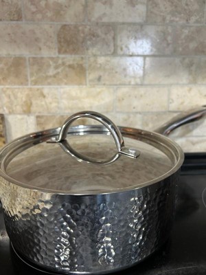 [This review was collected as part of a promotion.] I am really impressed with the quality of this saucepan. The tri-ply stainless steel heats evenly making it perfect for sauces and simmering without hot spots. The hammered design is beautiful. I also love the vapor seal lid. It feels sturdy and well made. I recommend it.