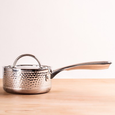 BergHOFF Vintage Tri-Ply Copper 5.5 Inches Saucepan 1qt. With Stainless Steel Lid, Hammered, Gold