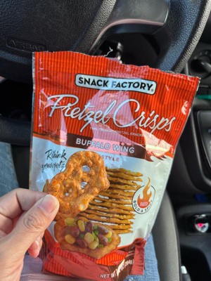 [This review was collected as part of a promotion.] The snack factory buffalo wing pretzel crisps are very tasty! They are not too hot and offer plenty of flavor! Good choice for a quick snack!