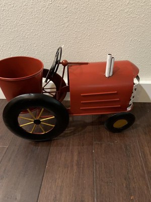 7" Planter Novelty Tractor Red - Alpine Corporation: Iron Construction, Freestanding Design, No Assembly Required