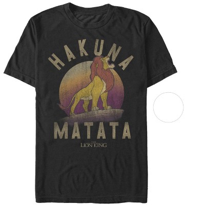 Let's hope the Circle of Life means that no matter where you end up, you always find your way back to the Lion King Geometric Logo Black T-Shirt. A yellow silhouette of Timon, Pumbaa, and Simba dance across this cool black Disney shirt that displays the Lion King logo in a red and blue geometric pattern.