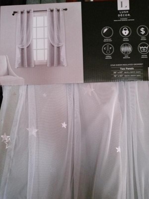 38"x63" Kids' Star Sheer Insulated Grommet Blackout Window Curtain Panel Set Navy - Lush Décor