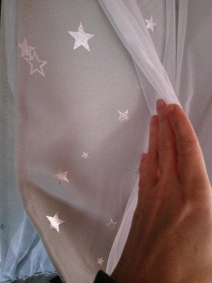 [This review was collected as part of a promotion.] These curtains are so great! The material is nice and thick- they do a great job blacking out the room. They are really well made. The pattern is adorable on its own, but the sheer layer on top makes them look even nicer! I used them in my child’s room (a big astronomy fan) and they were a big hit!