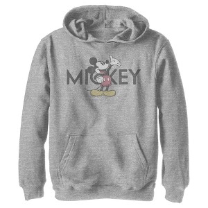 Boy's Disney Old School Mickey Pull Over Hoodie - Athletic Heather - Medium