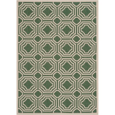 Elevate your living space with our exquisite indoor/outdoor area rug, meticulously crafted in Turkey with the finest materials. The 2' 7" X 5' small rectangle rug is a perfect blend of functionality and style, featuring a lush dark green and beige color palette that brings a natural elegance to any setting.