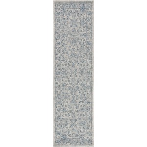 Adorn your home with a touch of elegance and the assurance of durability with our grey/navy runner area rug, where beauty and practicality are woven together, creating a piece that is as enduring as it is alluring.