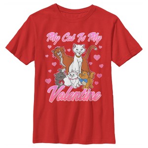 Boy's Aristocats My Cat is My Valentine T-Shirt - Red - X Large