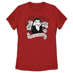 Women's Lion King Scar Valentine's Day Love is Savage T-Shirt - Red - X Large