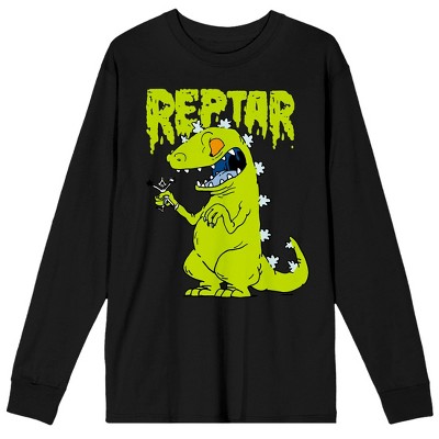 GRAPHIC TEE: The Nickelodeon dinosaur Reptar decorates this graphic tee. His name appears above him in green slimy letters. This shirt makes a great gift for original fans of the series who are now grown up.