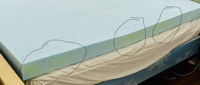 It arrived with yellow stains, seems to be from humidity. It is comfortable but useless with the exposed unknown stains that might be toxic, I don’t know if it’s water or a different substance. And after 4 hours, it has not fully expanded from all corners to the 4 inches. Impossible to return, does not fit in the box anymore.
