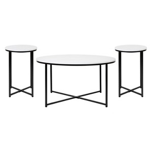 Merrick Lane Round Coffee Table Set - 3 Piece White Coffee Table Set with Matte Black Crisscross Frame - Coffee Table & 2 End Tables