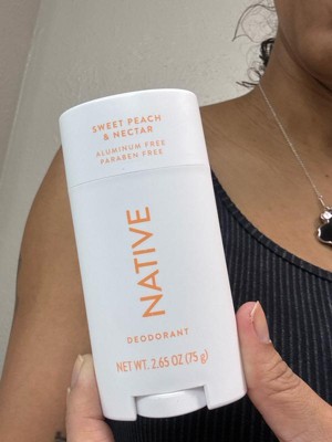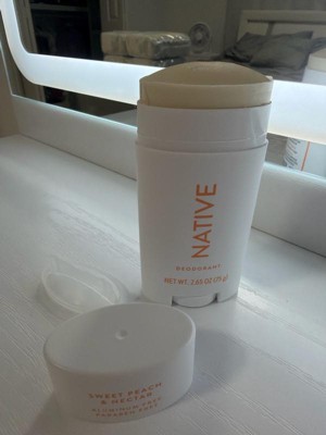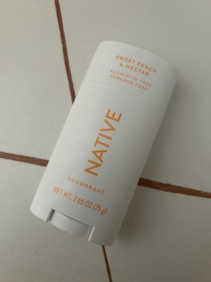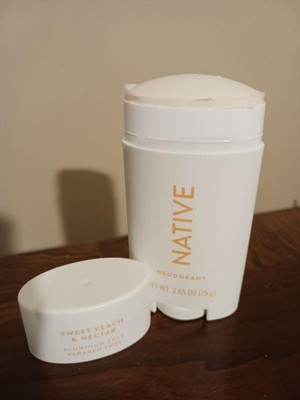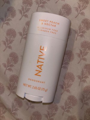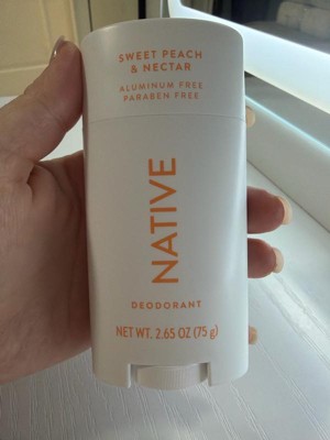 [This review was collected as part of a promotion.] This is the first Native Deodorant I tried and I was a bit disappointed.. It's a nice texture and doesn't leave a sticky feeling on the skin but the scent was pretty underwhelming. I only smell a light hint of peach- barely. it smells overall like the word "nectar" though. I like to use deodorants on top of antiperspirants so I can't attest to odor prevention fully but the couple days I used this without an antiperspirant, I did not notice any odor. Overall, if you're looking for a very light feminine scent this is a nice option
