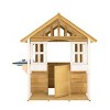 Kids can enjoy endless hours of imaginative play in this beautiful wooden cubby house that has a veranda and a kitchen for added fun. Product Details • Includes 1 all wood cubby house, 1 kitchen, 1 veranda and 2 wooden window boxes • Suitable for ages: 3+ years • Material: FSC-certified untreated yellow cypress wood, stainless steel, plastic and steeld o Adult assembly required • Colour: Natural (Brown) o Product weight: 35.9kg/ 79 lbs Features • Great British design • Features mud kitchen with utencils • Beautiful all wood playhouse • Features attractive pitched wooden roof • Open design, so easy to see children playing • With working half stable door • Ideal for imaginative role play • Robust construction • Kitchen with hobs and sink bowl Additional Information • For domestic and outdoor use • Adult assembly and supervision required