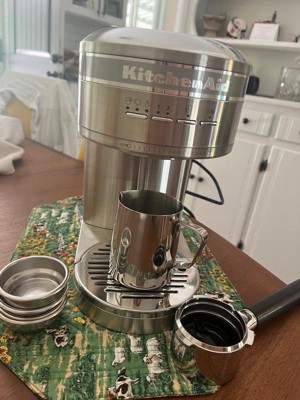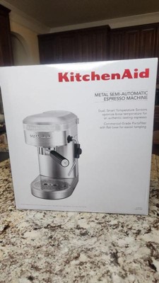 [This review was collected as part of a promotion.] KitchenAid truly lives up to their name. I am truly over the moon for this espresso machine! It has surpassed all my expectations and needs! Making coffee at home has never been so satisfying. First off, the design is so simple and elegant. I love how easy it is to wipe clean before and after brewing an espresso. The initial setup was pretty simple and the instructions are seemingly straightforward. After a few minutes of reading the instructions, I was ready to began filling up my water reservoir (includes a handle) which was a bonus in my book. Next, I found my desired filter basket. (Refer to pg. 6 in manual) for basket selection chart. I used the single wall (2 shot) for my latte of choice. After following the rest of the instructions I was ready to brew. Positioning the portafilter is very easy but make sure to align it correctly with the unlock/lock mechanism. The entire brewing process only took about 30 seconds. The temperature was perfect and the taste was even better! This semi-automatic espresso machine is made remarkably well. It’s durable and has all the features I was looking for in an espresso maker. Overall, I’m very pleased with the craftsmanship of this machine and the overall design. It’s been fun recreating my favorite lattes at home! Reminder: when cleaning the milk frother make sure to point it towards the drip tray or into an empty cup. Otherwise, it will spray hot water everywhere!