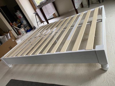 MUSEHOMEINC Pine Wood 12 Slat Platform Rustic Bed Frame, Whitewashed, Queen