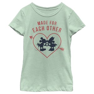 Girl's Disney Mickey and Minnie Made For Each Other T-Shirt - Mint - Large