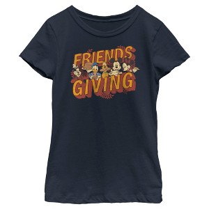 Girl's Mickey & Friends Friendsgiving Celebration T-Shirt - Navy Blue - Medium