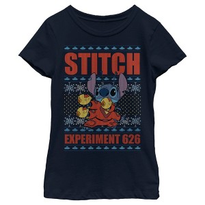 Girl's Lilo & Stitch Experiment 626 Ugly Sweater T-Shirt - Navy Blue - Large