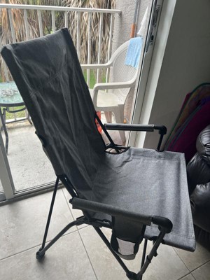 [This review was collected as part of a promotion.] Me and my family do a lot of camping and this chair was perfect to take along. It folds and unfolds easy and is not a struggle to put back in the carrying bag. The chair is comfortable. I like that it has a high back for support.