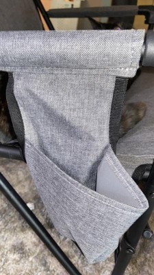 [This review was collected as part of a promotion.] This chair is really nice. The fabric is a super great quality, nice and thick and beautiful. It’s pretty comfortable too. The tall back is nice for a camp chair, because you can rest your head against it. However, that feature does make it a lot longer when folded up than a regular camp chair. It makes it a little more cumbersome to carry it around. The arms are also just a tube-like round plastic, instead of a wider fabric arm. I find this a little less comfortable.