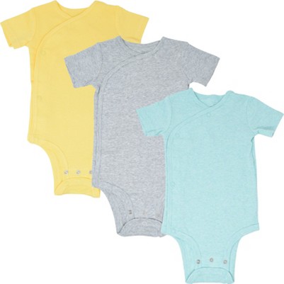 Cozeeme Newborn Baby Boys 3 Pack Cuddly Short Sleeve Bodysuits Light Blue Gray Yellow Newborn