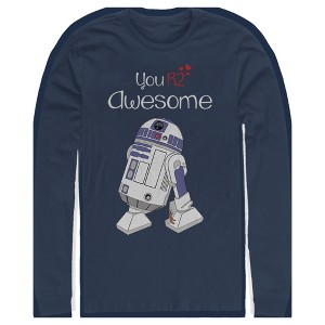 Stop looking for love in Alderaan places! Add a little out-of-this-world style to your wardrobe with this epic Men's Star Wars Long Sleeve Tee just in time for Valentine's Day! This cute design features the words "You R2 Awesome" with R2-D2 underneath, perfect for the valentine in your life who loves all thingsStar Wars!