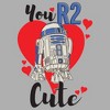 • Featuring a retro depiction of your favorite droid R2-D2 with the words "You R2 Cute"