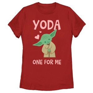 Women's Star Wars Valentine's Day Yoda One for Me Simple T-Shirt - Red - Medium