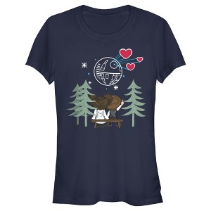 Juniors Womens Star Wars Valentine's Day Han and Leia Holding Hands T-Shirt - Navy Blue - 2X Large