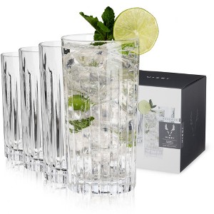 Viski Crystal Highball Glasses, 14 oz Long Drink Glasses for Gin & Tonic, Long Island Iced Tea, Cocktails, Wedding Gifts, Housewarming Gift Set of 4