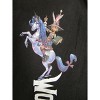 • GRAPHIC DESIGN: A silver horse stands on its hind legs as its rider holds on the graphic design on these pants. Tina's Tiny Wonderlands is printed in sideways white letters underneath the image. These pants make a great gift for Borderlands fans.