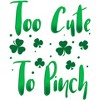 • This design features the words "Too Cute To Pinch" and green shamrocks all around!