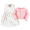 Hudson Baby Infant and Toddler Girl Cotton Dress and Cardigan Set, Pink Tulips - 1 of 4