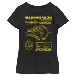 Girl's Star Wars Millennium Falcon Schematics T-Shirt - Black - Medium