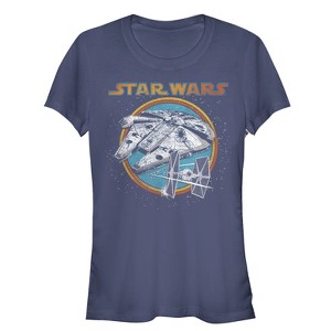 - Own the moment with this stylish new Junior's Tee Shirt that is perfect for every occasion! Featuring your favorite characters like Millennium Falcon.