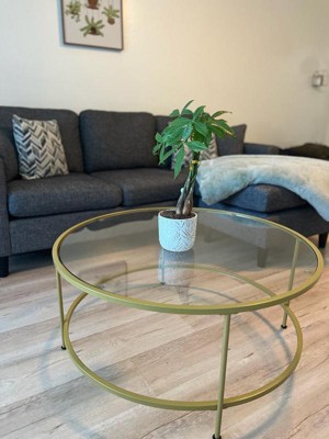 Product Name: Merrick Lane Round Glass Coffee Table with Round Brushed Gold Frame