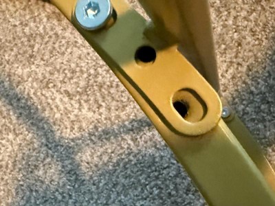 [This review was collected as part of a promotion.] From one standpoint, the overall aesthetic of this coffee table is good: round glass contrasted with straight, steel legs. Unfortunately, that’s the best part. Assembly instructions were relatively easy with parts marked for ease of building. The last two screws to hold together the lower ring (frame) were impossible to insert due to the misaligned holes. The color is off: rather than being a bright, shiny gold tone, it is a yellowish-greenish hue with a matte finish. The glass top (not beveled) holds firmly with the four suction cups so the glass does not move. It is very lightweight, so one person can move it from one location to another. Rubber pads are in the bottom of each leg so the table does not scratch flooring. Instructions say to clean with water on a cloth, but glass cleaner is needed for the top. I would not recommend this to others.