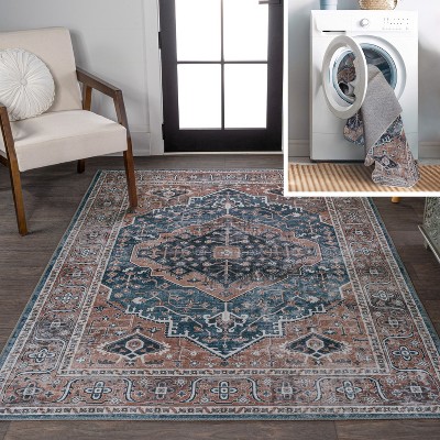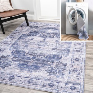 JONATHAN Y Alanya Ornate Medallion Machine-Washable Navy/Cream 5 ft. x 8 ft. Area Rug, Soft, Velvety Texture, Lightweight