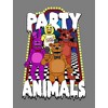 • GRAPHIC TEE: Bonnie, Chica, Foxy, and Freddy Fazbear line up on a checkered floor to get ready for the party. Dripping white letters around the characters spell out, "Party Animals." Fans of tejh animal animatronics will love this graphic tee.