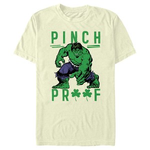 It's your lucky day because you've got an entire team of superheroes to make sure you don't get pinched with this awesome officially licensed Marvel St. Patrick's Day Hulk Pinch Proof Men's Tee. Featured on this tee is a graphic of the Hulk reaching in the center with "Pinch Proof" printed around him.