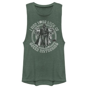Juniors Womens Star Wars Darth Vader St. Patrick's Day Your Lack of Green Disturbing Festival Muscle Tee - Pine Green Heather - X Large