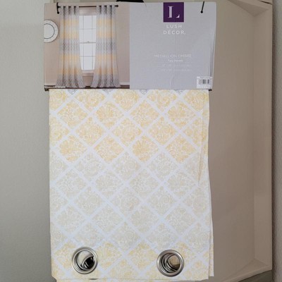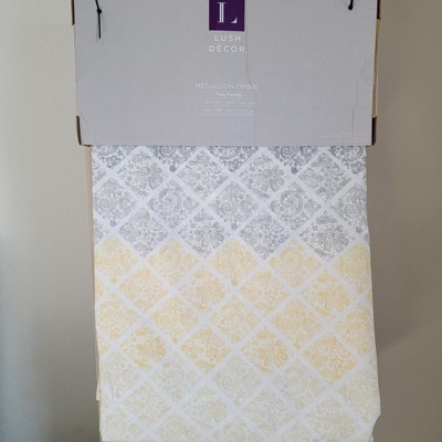 Set of 2 84"x52" Medallion Ombre Window Curtain Panels Yellow - Lush Décor: Light Filtering Bedroom Curtains