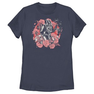 Women's Star Wars Floral Darth Vader With Tie Fighters T-Shirt - Navy Blue - Medium