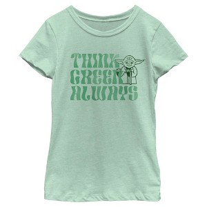 Girl's Star Wars Yoda St. Patrick's Day Think Green Always T-Shirt - 1 of 4