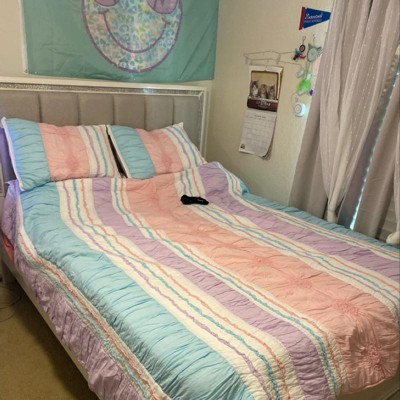 This quilt is beautiful! Soft, not too thick or too thin. Perfect for my hot sleeper of a daughter. She loves it!!! We are very happy with this quilt set and the sale price made it that much better.