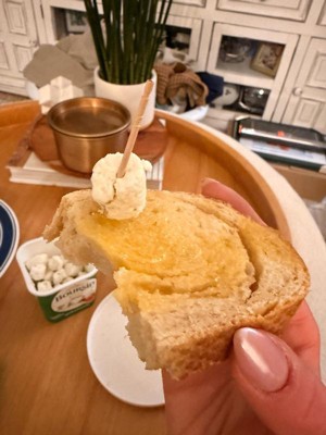[This review was collected as part of a promotion.] These were such a delicious addition to bread and butter with some wine- felt like I was fine dining!! Loved the flavor of these and the small size which makes them easy for snacking. I also took a few and spread them onto a piece of bread which was also delicious and easy to spread. Only thing I’d change is the quantity / amount you get for the price! The container is pretty darn small for the price but still worth it for a “fancier” snacking option. Also very convenient that it doesn’t require any unwrapping and there’s a lid so you can take out a few at a time