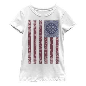 Girl's Lost Gods Paisley American Flag T-Shirt - White - Medium