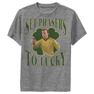 Boy's Star Trek: The Original Series St. Patrick's Day Captain Kirk Set Phasers to Lucky Performance Tee - Charcoal Heather - Medium